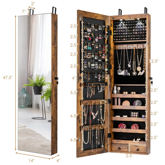 - -LED lights illuminate the jewelry armoire automatically when opening it or manually